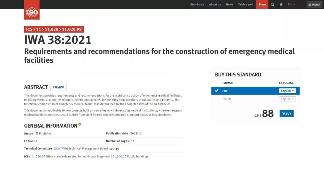 在此新冠肺炎疫情持續蔓延、亟待國際合作共同抗擊疫情之際,IWA 38《應急醫療設施建設導則》作為ISO應對新冠肺炎疫情的系列標準之一先行發布,為世界各國安全、適用、快速建設應急醫療設施提供了有力的技術支持,為中國乃至世界人類健康事業作出了巨大的貢獻。